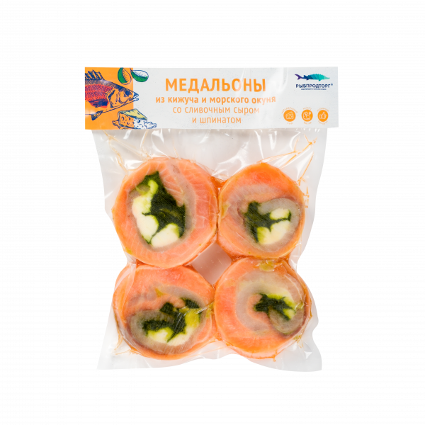 Медальоны из кижуча и морского окуня со сливочным сыром и шпинатом